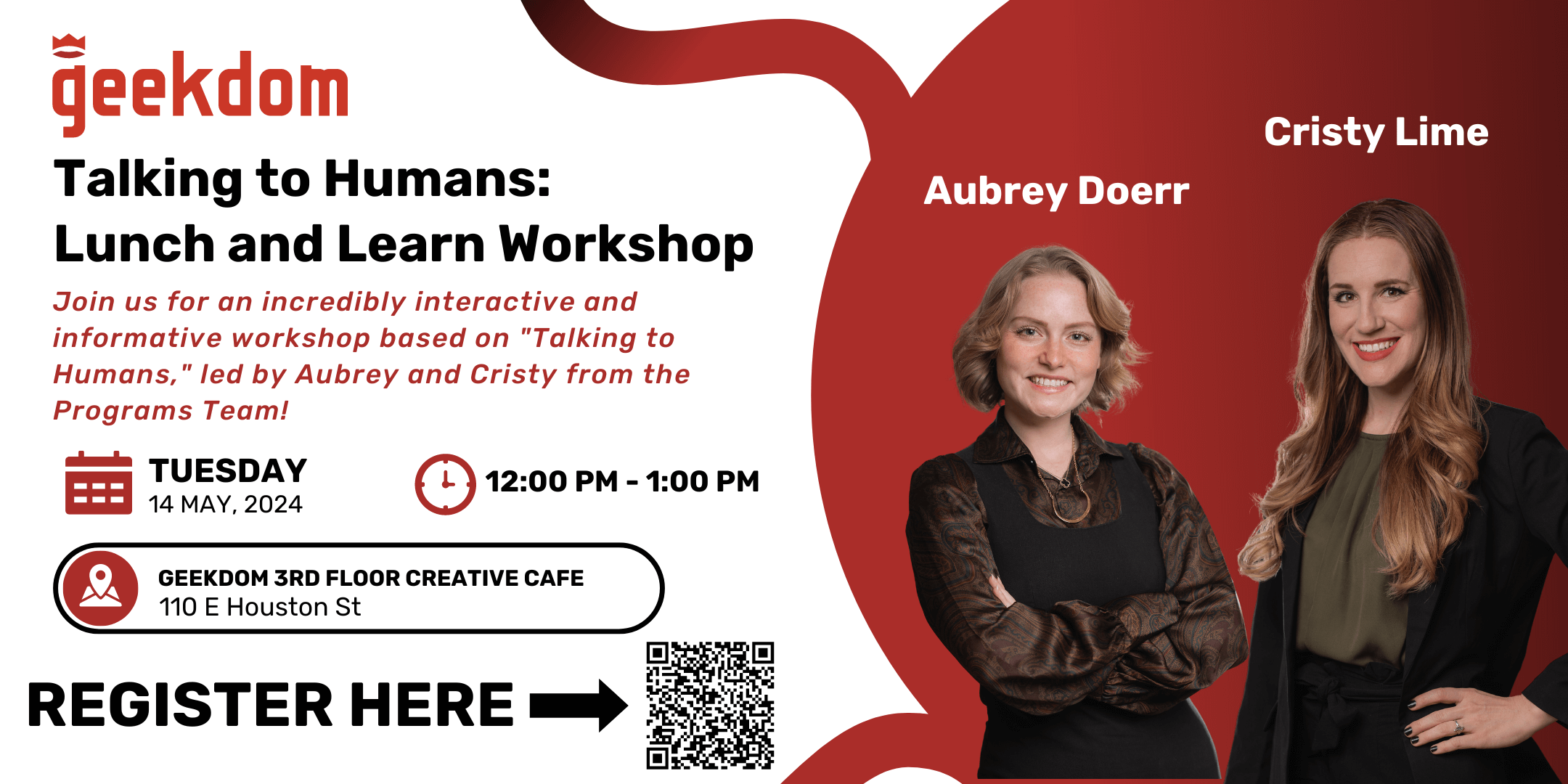 Join us in Geekdom’s 3rd floor creative cafe for an incredibly interactive and informative workshop based on Giff Constable’s book, “Talking to Humans,” led by Geekdom Staff!